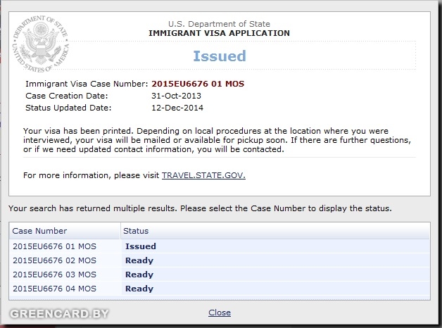 Просто еще просматривал инфу по самому форуму (допустим в январятах 2015 - народ пишет первые 2 цифры кейса и назначенную дату интервью, заходил на сайт посольства, они тоже выбрасывают инфу об обращениях по лотерее (номер кейса и дата интервью) - легко определить чела по сопосталению даты и первых цифр кейса (от 1 до 4 челов в день по ДВ - и номера-то не совпадают) => понимаешь полностью его номер кейса, заходил в ceac и вводил полный номер кейса - те, кто прошел интервью и получил визу - ISSUED, ждущие - READY. А те участники, которые отправили анкеты и ждут каррента и если повезет своих дат интервью - просто окно at NVC.